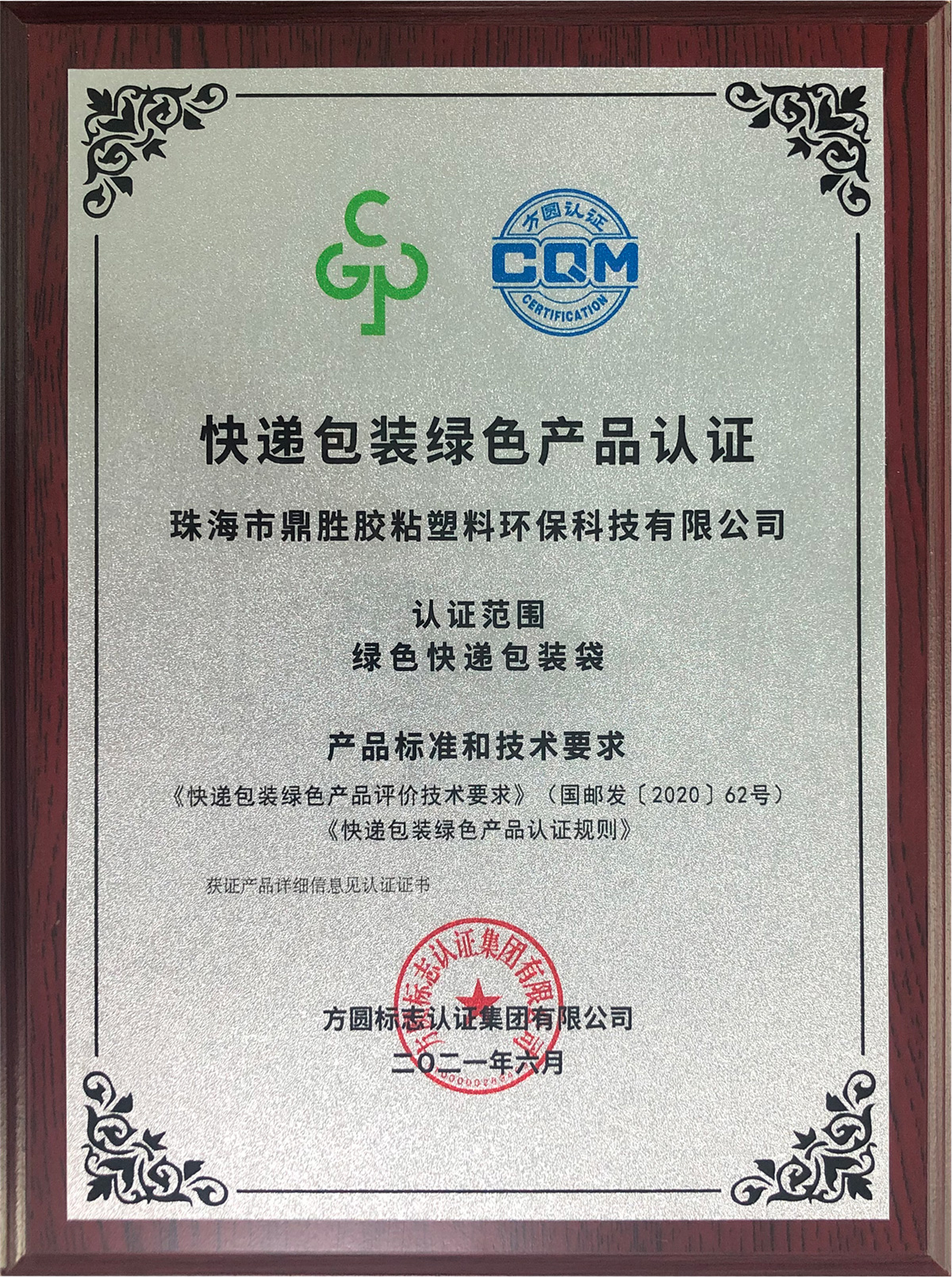 獲國家郵政總局頒發(fā)的:快遞包裝綠色產(chǎn)品認(rèn)證