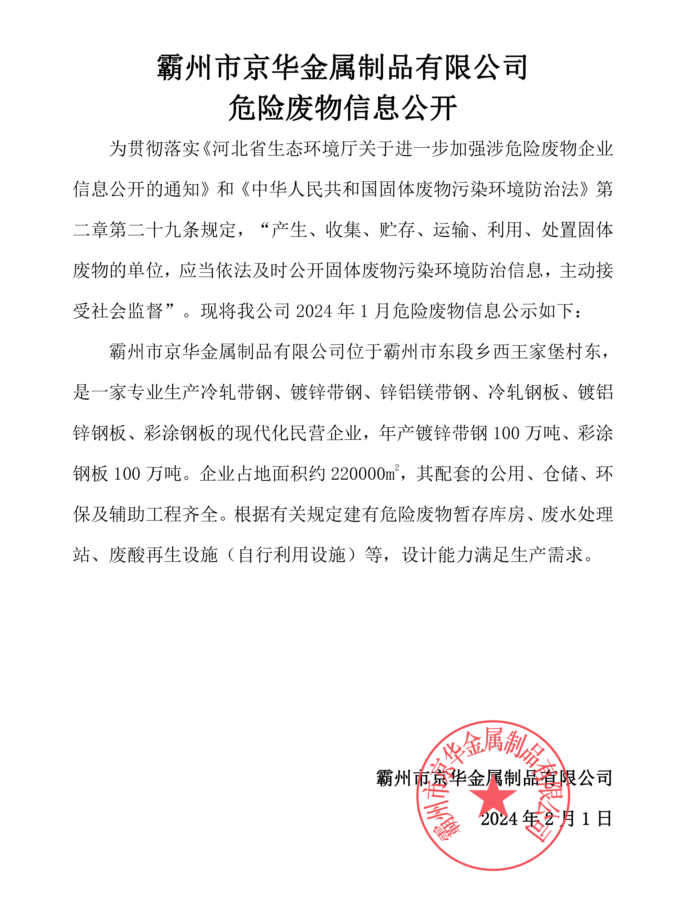 下一條:24年2月危險廢物信息公開-霸州市京華金屬制品有限公司